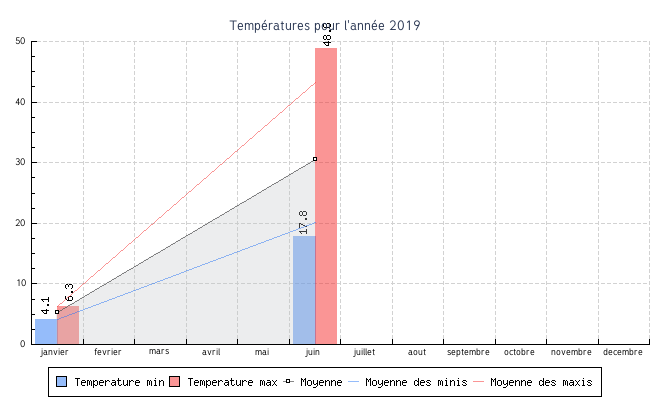 | juin | 17.8 °C | 20.1 °C | 48.8 °C | 43.2 °C | 30.6 °C | 0.0 km/h | 0.0 km/h | N |