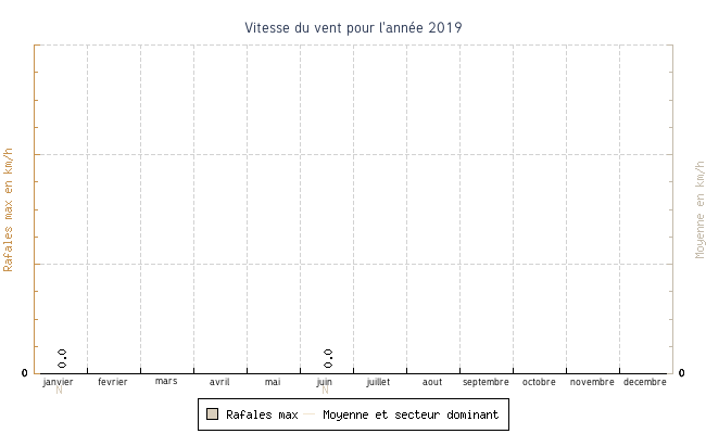 | janvier | 4.1 °C | 4.1 °C | 6.3 °C | 6.3 °C | 5.3 °C | 0.0 km/h | 0.0 km/h | N |